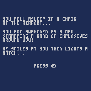 Run is a game about escaping an airport while a mad man with a lit match tries to explode you after strapping a bomb to you. Survive 3 levels of dodging obstacles to win.